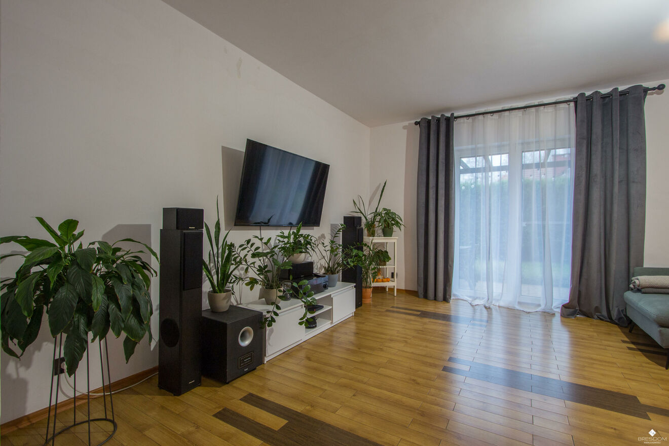Niewątpliwym atutem nieruchomości jest bardzo ładny ogród oraz spokojna okolica.